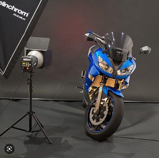 On va pouvoir organiser cela dans le garage chez Philippe à Nanterre avec fonds, flashs et réflecteurs : là, ce seront l’éclairage des flashs et la mise en scène qui primeront pour un résultat artistique humoristique ou pas. La moto est le thème principal mais le pilote et son équipement peuvnet être au centre des attentions.